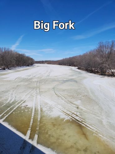 Little Fork and Big Fork pictures courtesy of Darren Heidinger that's staying with us! Thank you so much for the pictures, we all appreciate it! They are still holding but very patchy. It's anyone's guess on if they will hold until Friday but we'll see. Water clarity has been ridiculous clear and it will be interesting to see if adding in some chocolate milk will make the bite worst or better. I'm really curious on this because it looks like the first year we were up year and when they broke it was like someone dumped a big slushy in the river and that was it. Within a day or two it was back to normal. BUT each year has been different so far.